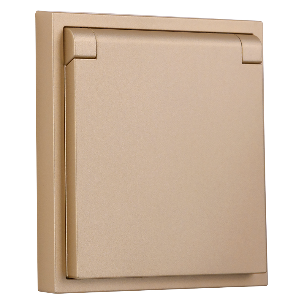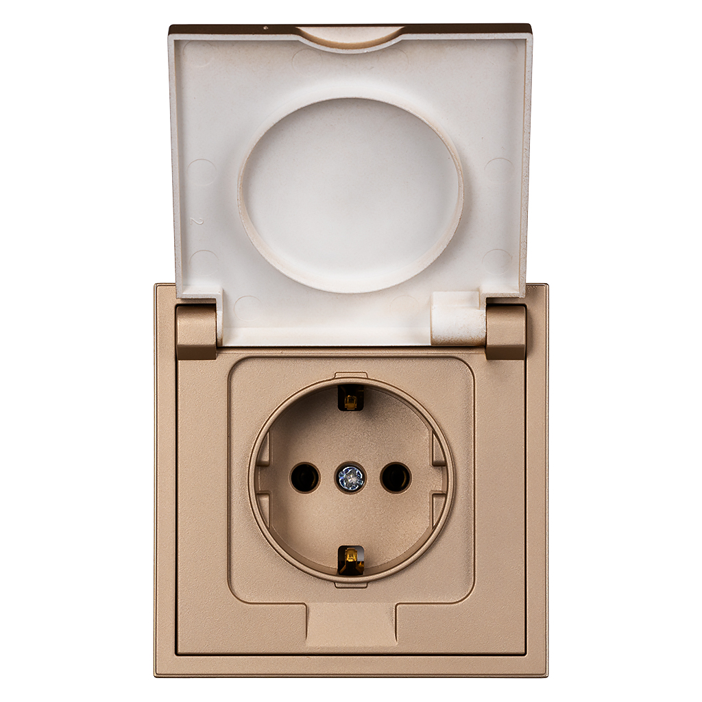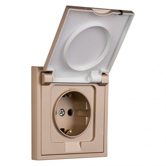 Розетка 1-местная с заземлением с крышкой 16А шампань Капелла (SBE-09c-16-S1-1ZK)