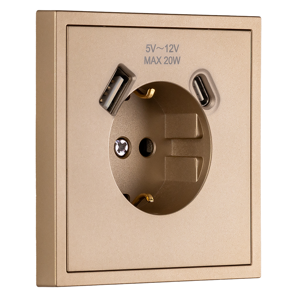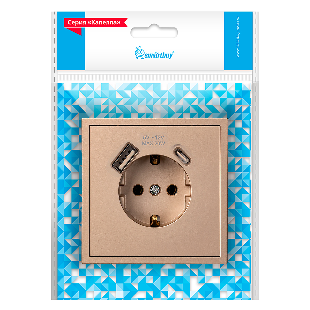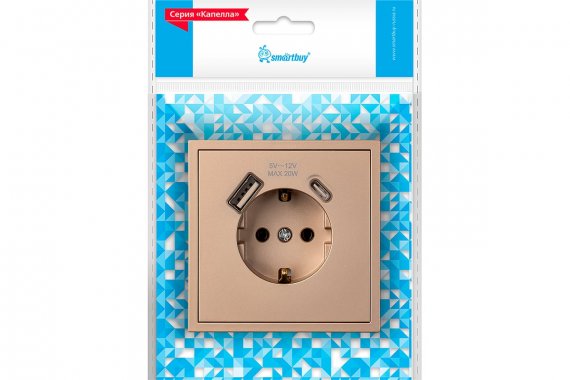 Розетка 1-местная с заземлением USB+Type 16А шампань Капелла (SBE-09c-16-S1-USB)