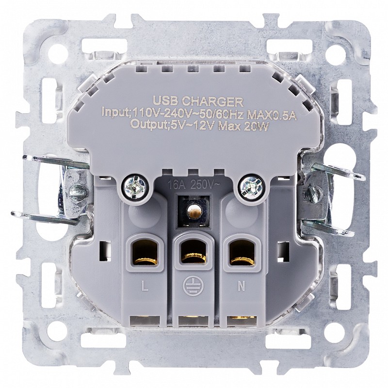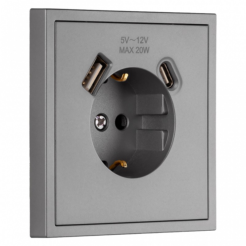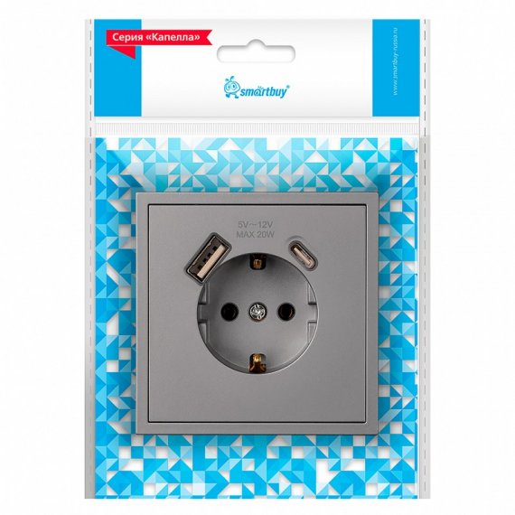 Розетка 1-местная с заземлением USB+Type 16А графит Капелла (SBE-09g-16-S1-USB) Электроустановочные изделия; Серия "Капелла" (скрытая установка); Выключатели и розетки