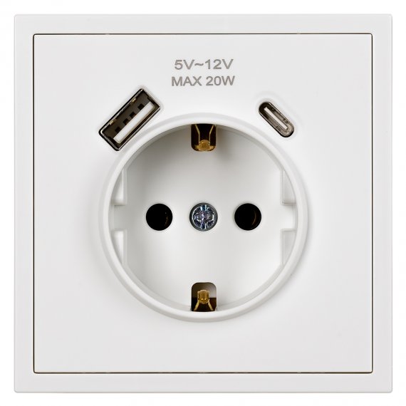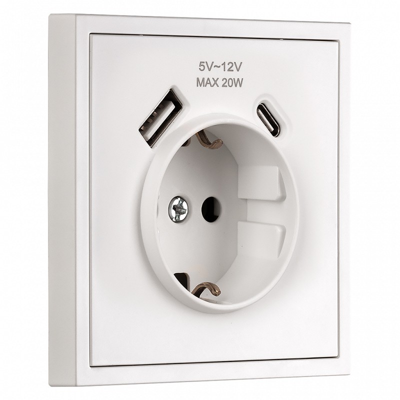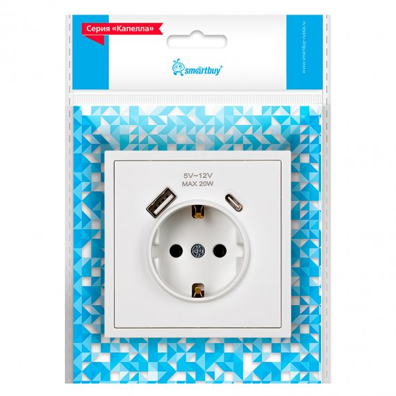 Розетка 1-местная с заземлением USB+Type 16А белая Капелла (SBE-09w-16-S1-USB)