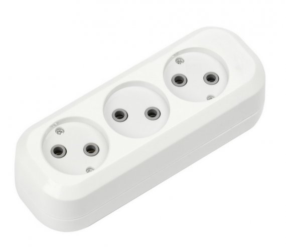 Колодка бытовая, 3 гнезда 10А/2,2кВт без заземления (SBE-10-3-00-N)/100