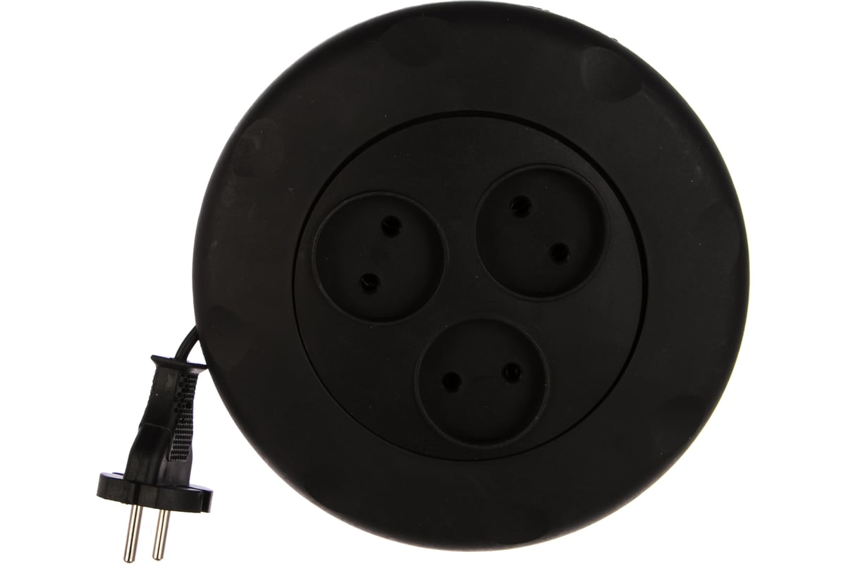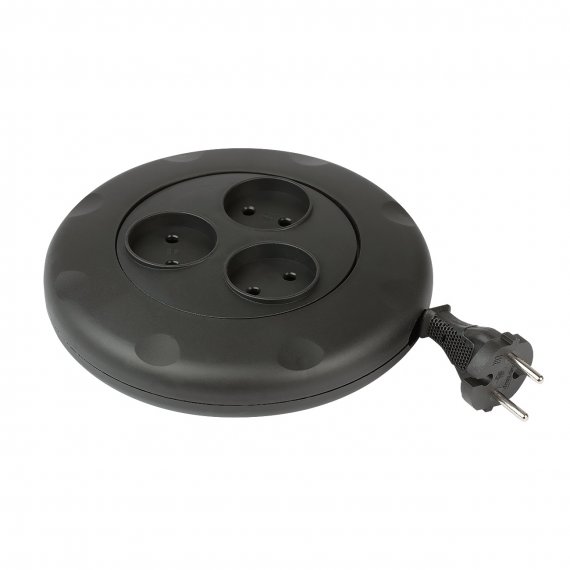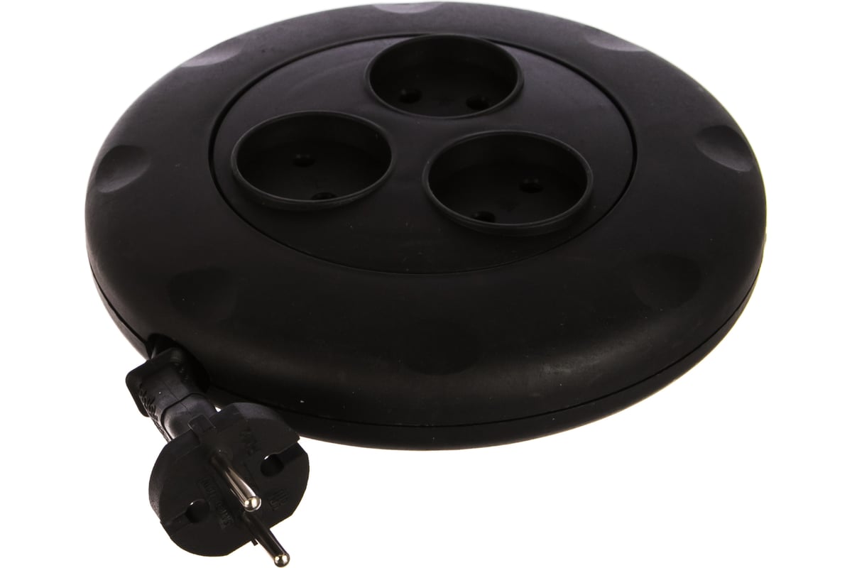 Удлинитель 3 гнезда 3 метра 10А/2,2кВт, б/з, круглый, черный (SBE-10-3-03-B)/40