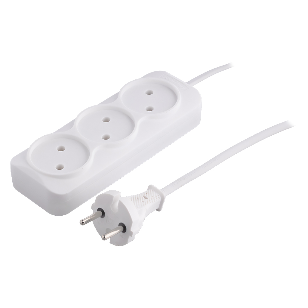 Удлинитель 3 гнезда 1,5 метра 6А/1,35кВт без заземления ШВВП 2х0,75мм? (SBE-10-3-1,5-F)/60