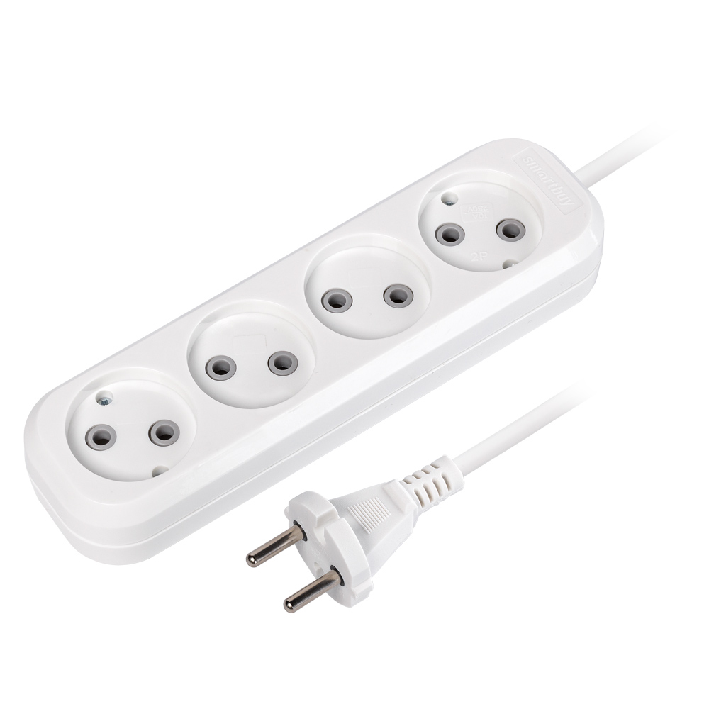 Удлинитель Smartbuy, 4 гнезда 7 метров 10А/2,2кВт без заземления ПВС 2х1,0 (SBE-10-4-07-N)