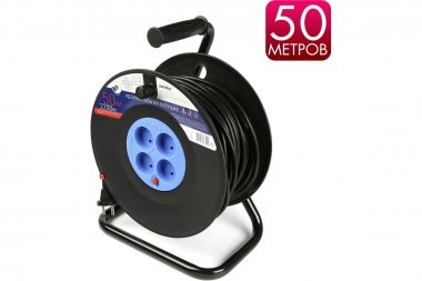 Удлинитель на катушке 4 гнезда 50м,без заземления с предохранителемПВС 2*1,0 10А/2,2кВт