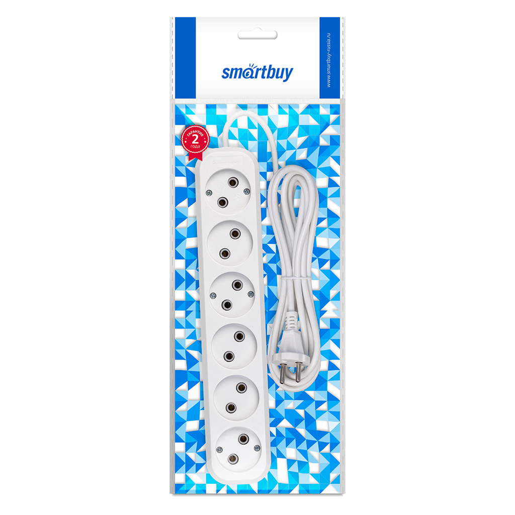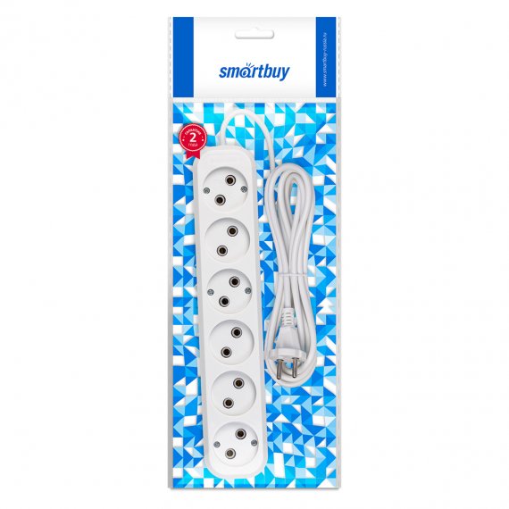 Удлинитель Smartbuy, 6 гнезд 3 метра 10А/2,2кВт без заземления ПВС 2х1,0 (SBE-10-6-03-N)