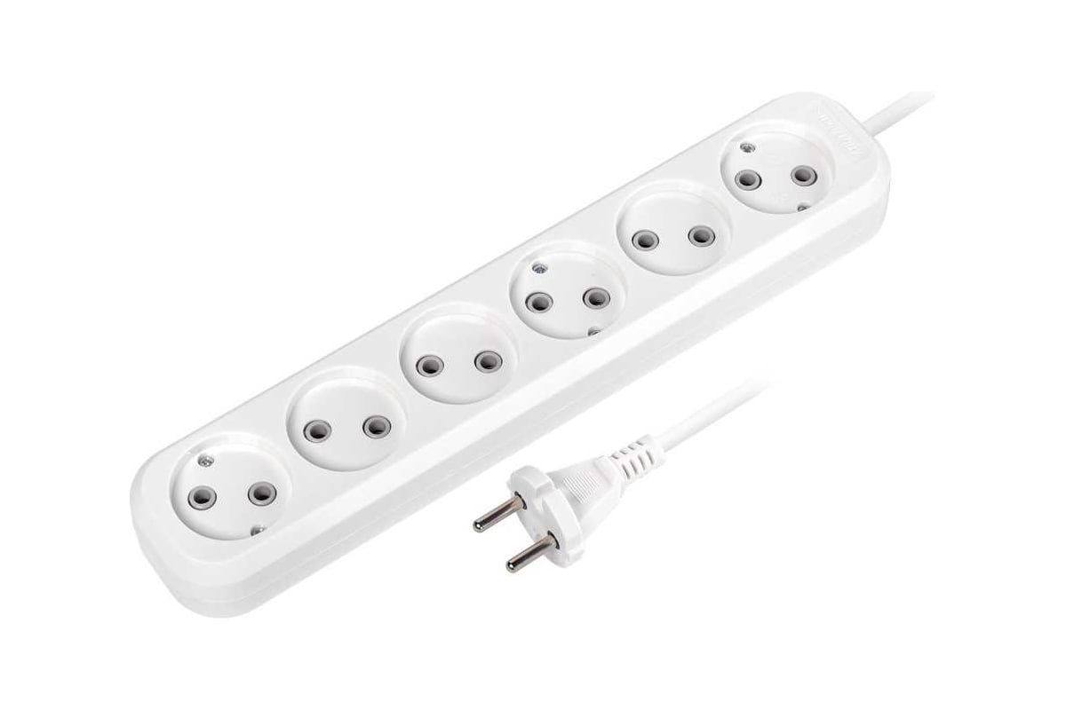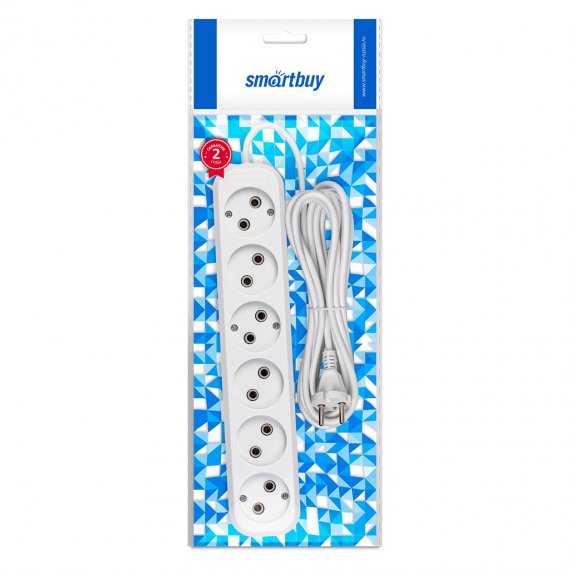 Удлинитель Smartbuy, 6 гнезд 5 метров 10А/2,2кВт без заземления ПВС 2х1,0 (SBE-10-6-05-N)