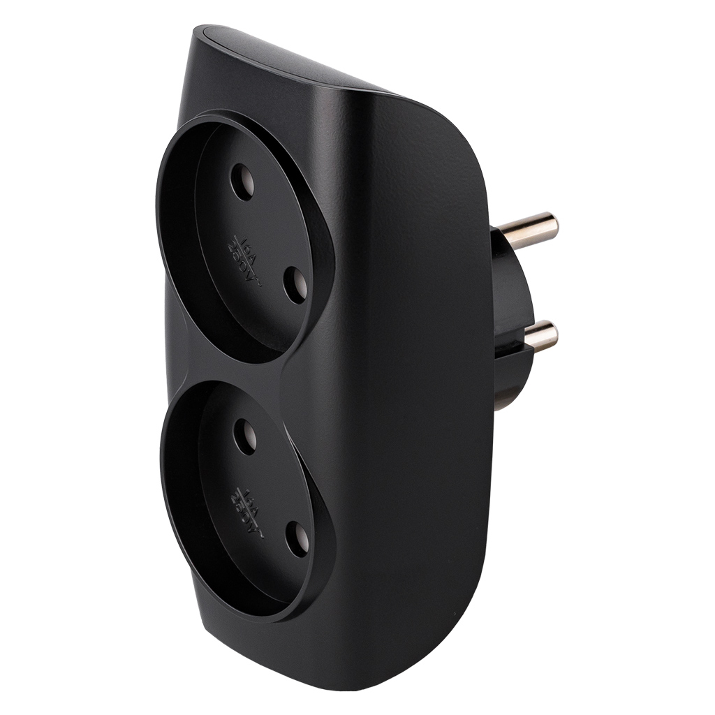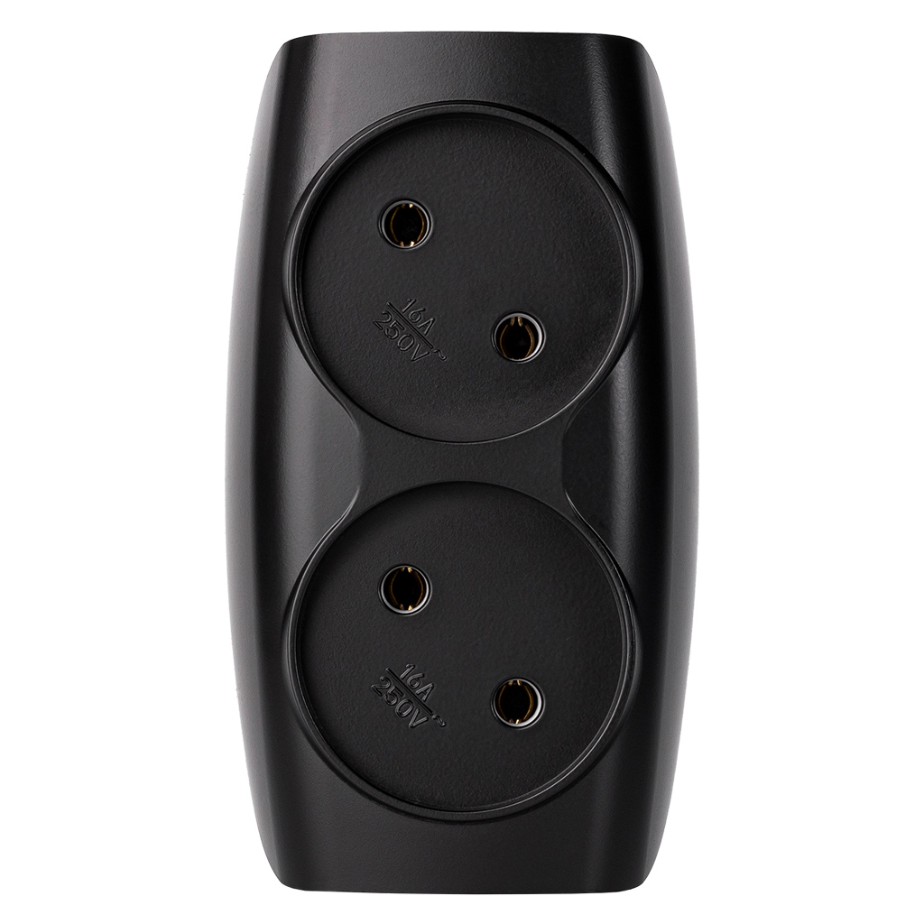 Разветвитель сетевой Тройник , 2 гнезда без заземления 10А 250B, черный (SBE-10-A04b-2)