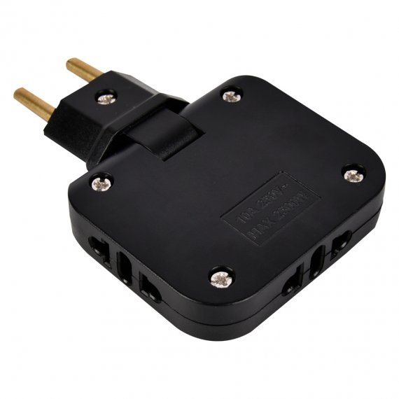 Разветвитель сетевой плоский поворотный, 3 гнезда без заземления 10А 250B, черный (SBE-10-A07b-3)
