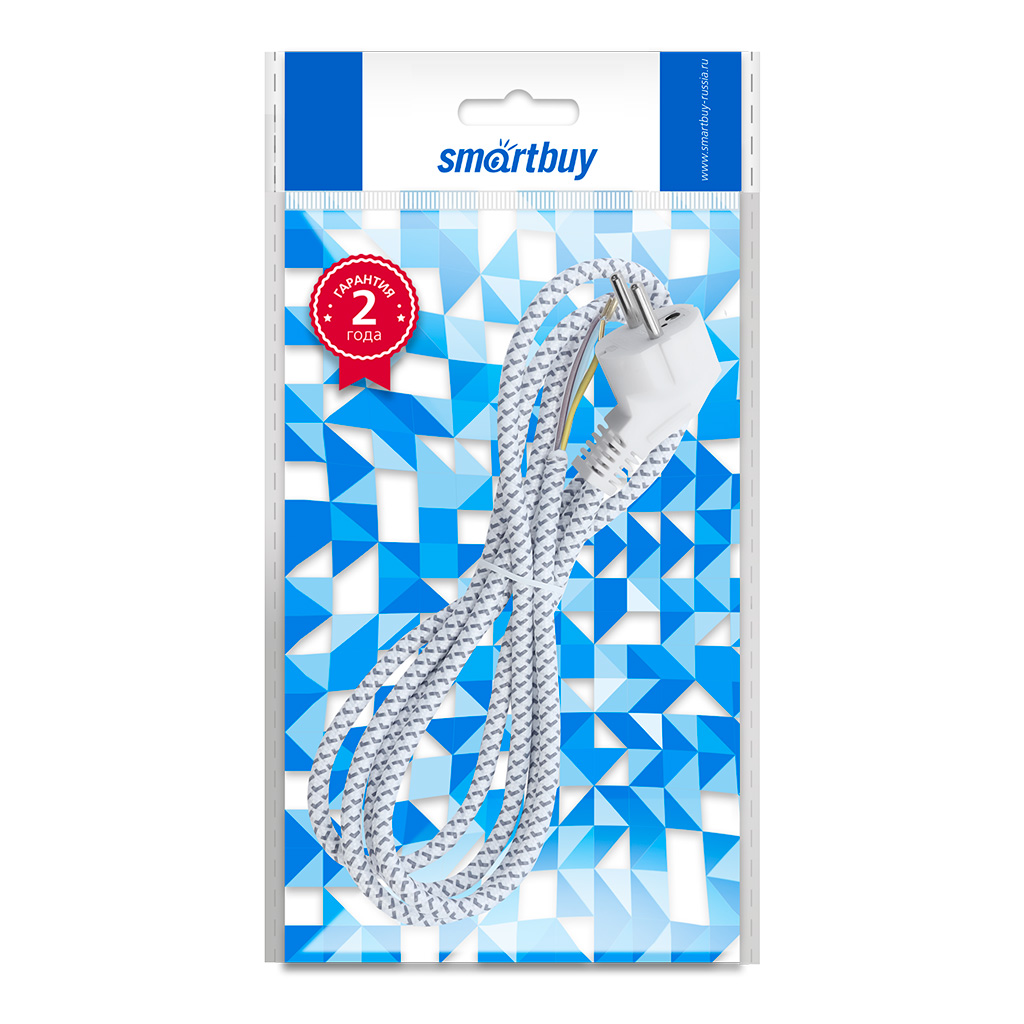 Smartbuy SBE-10-P08-w Сетевой шнур в тканевой оплетке с заземлением 1,8 метра, 10А/2,2кВт