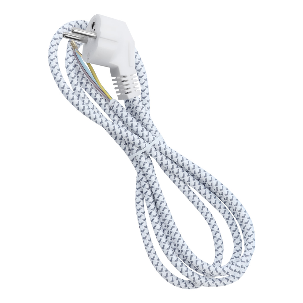 Сетевой шнур в тканевой оплетке с заземлением 1,8 метра, 10А/2,2кВт, белый (SBE-10-P08-w)