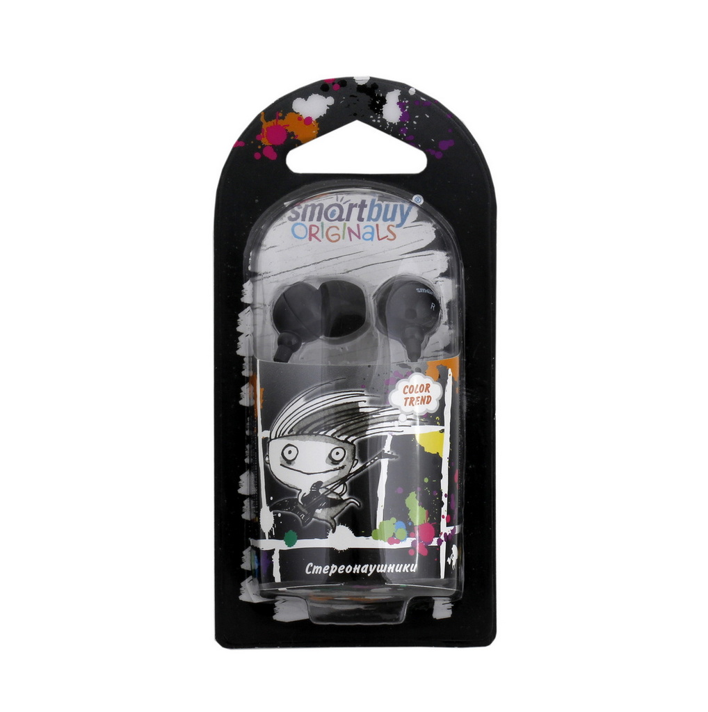 Внутриканальные стерео наушники SmartBuy COLOR TREND, провод 1.2м, черные (арт. SBE-1100)40/320
