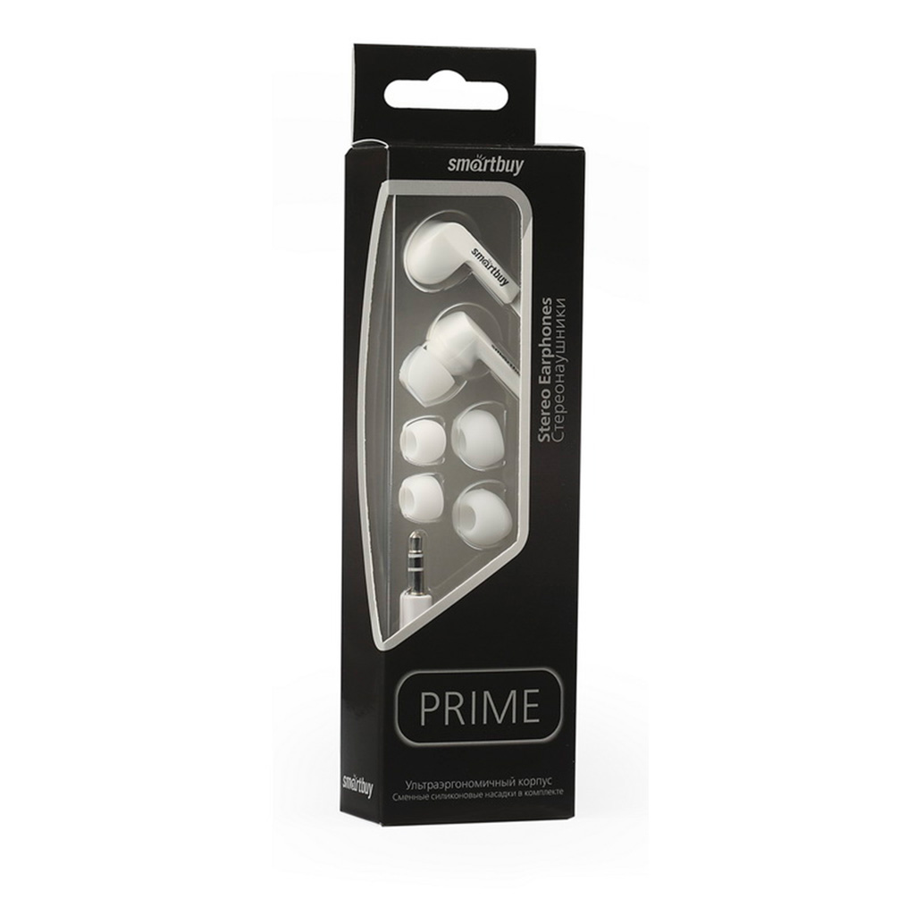 Внутриканальные наушники Smartbuy PRIME, динамики 10мм, плоский каб, бел, 3 пары вставок(SBE-120)/60