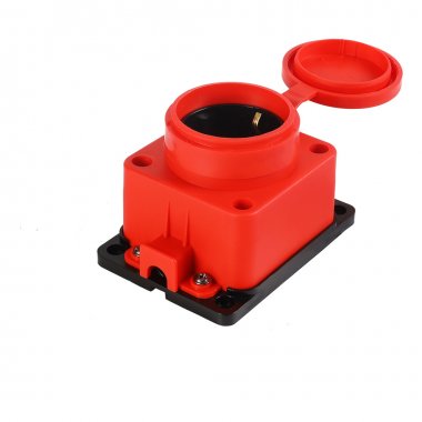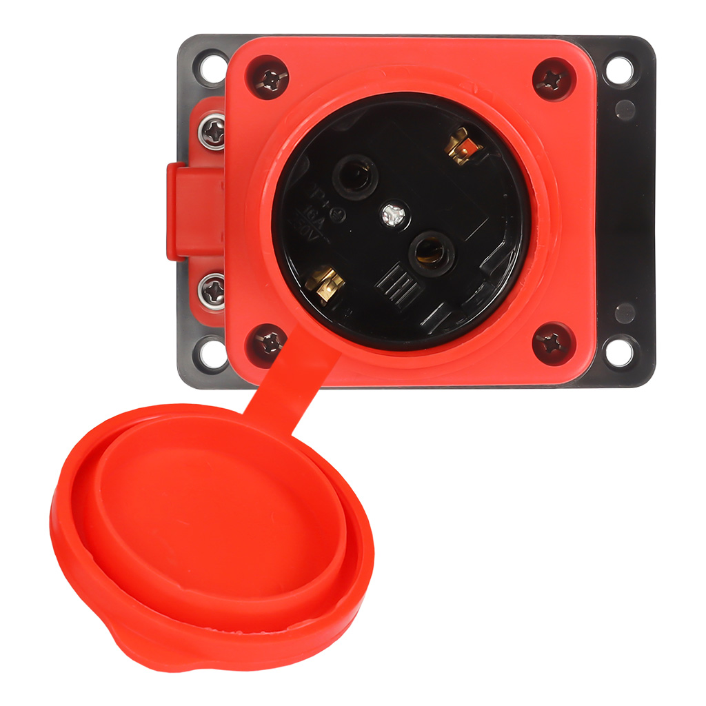 Розетка настенная с защитной крышкой каучуковая 230В, 2P+PE, 16A, IP44, красная (SBE-16-1-00-Rr)