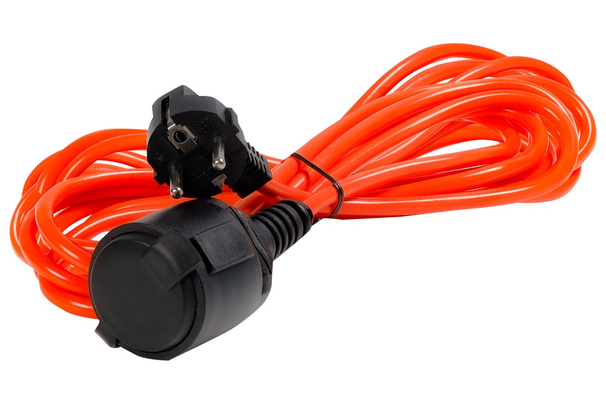 Кабель удлинителя покрыт плотной изоляцией, что обеспечивает защиту токоведущих проводов от механических повреждений. При подключении нагрузки шнур необходимо полностью размотать.