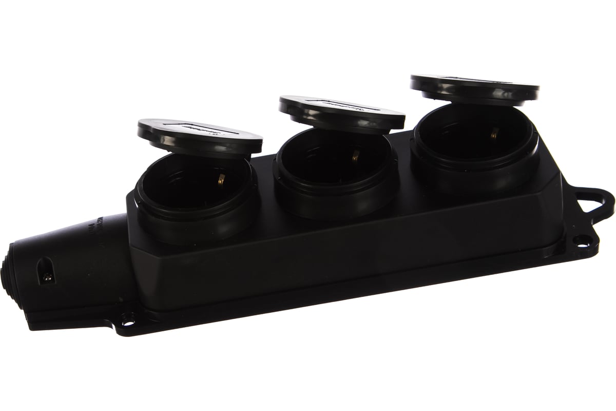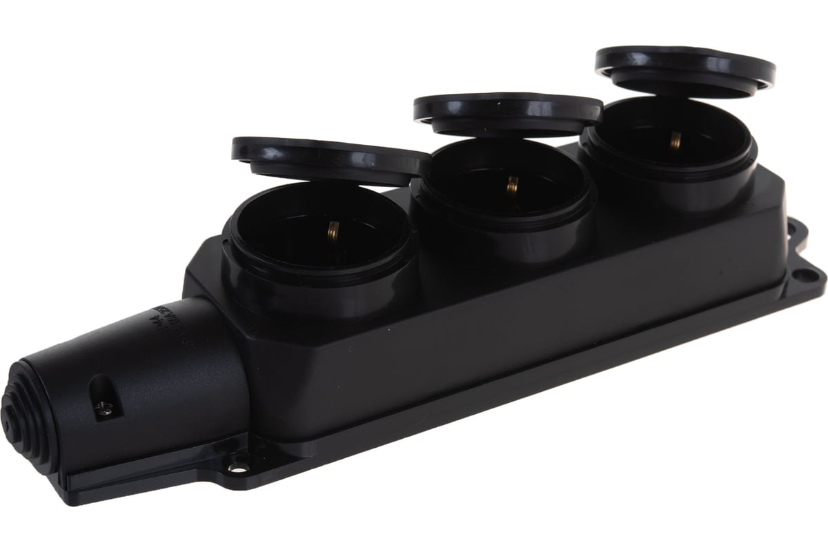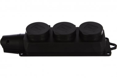 Розетка переносная 3-местная с заземлением, выполнена из каучука, серия Одри, цвет черный. Имеет степень защиты IP44. Размер 256*66*51мм. Номинальное напряжение 250, номинальный ток 16А.Розетка STEKKER RST16-23-44 на 3 гнездо, с крышкой, с заземлением. Материал: термопласт, каучук, цвет черный, размер 256*66*51мм. Номинальное напряжение 250, номинальный ток 16А, диапазон рабочих температур 0..+40°C, IP44