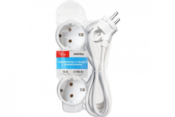 Smartbuy SBE-16-3-10m-Z Удлинитель New, 3 гнезда 10 метров 16А/3,5кВт ПВС 3х1,0 мм?