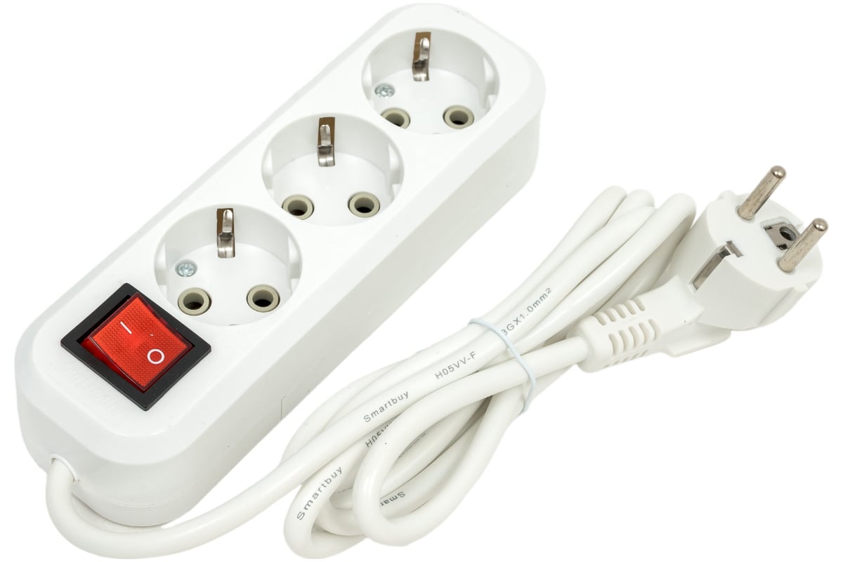 Удлинитель Smartbuy, 3 гнезда 1,5 метра 16А/3,5кВт с выкл. и заземл. ПВС 3х1,0 (SBE-16-3-1,5-ZS)/50