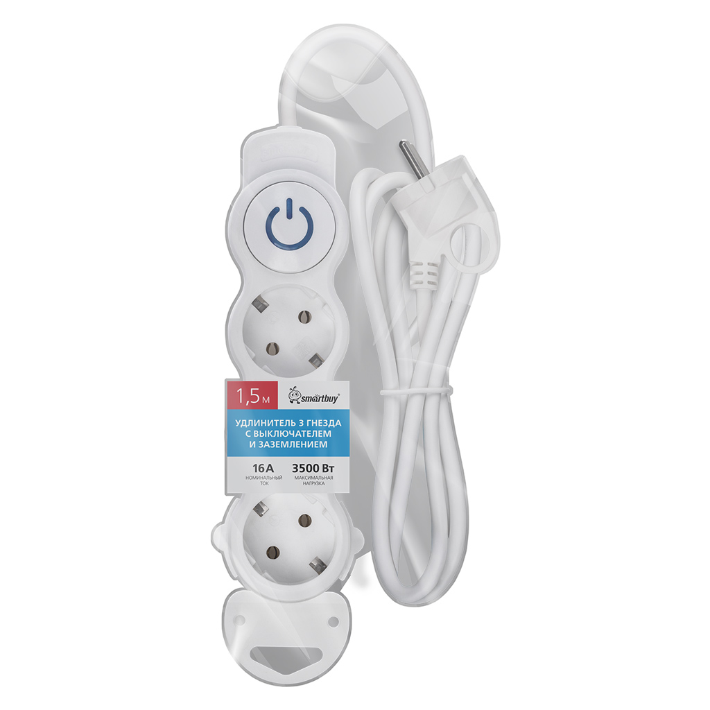 Smartbuy SBE-16-3-1.5m-ZS Удлинитель New, 3 гнезда, 1.5 м, 16А/3,5кВт