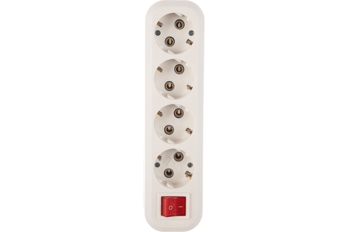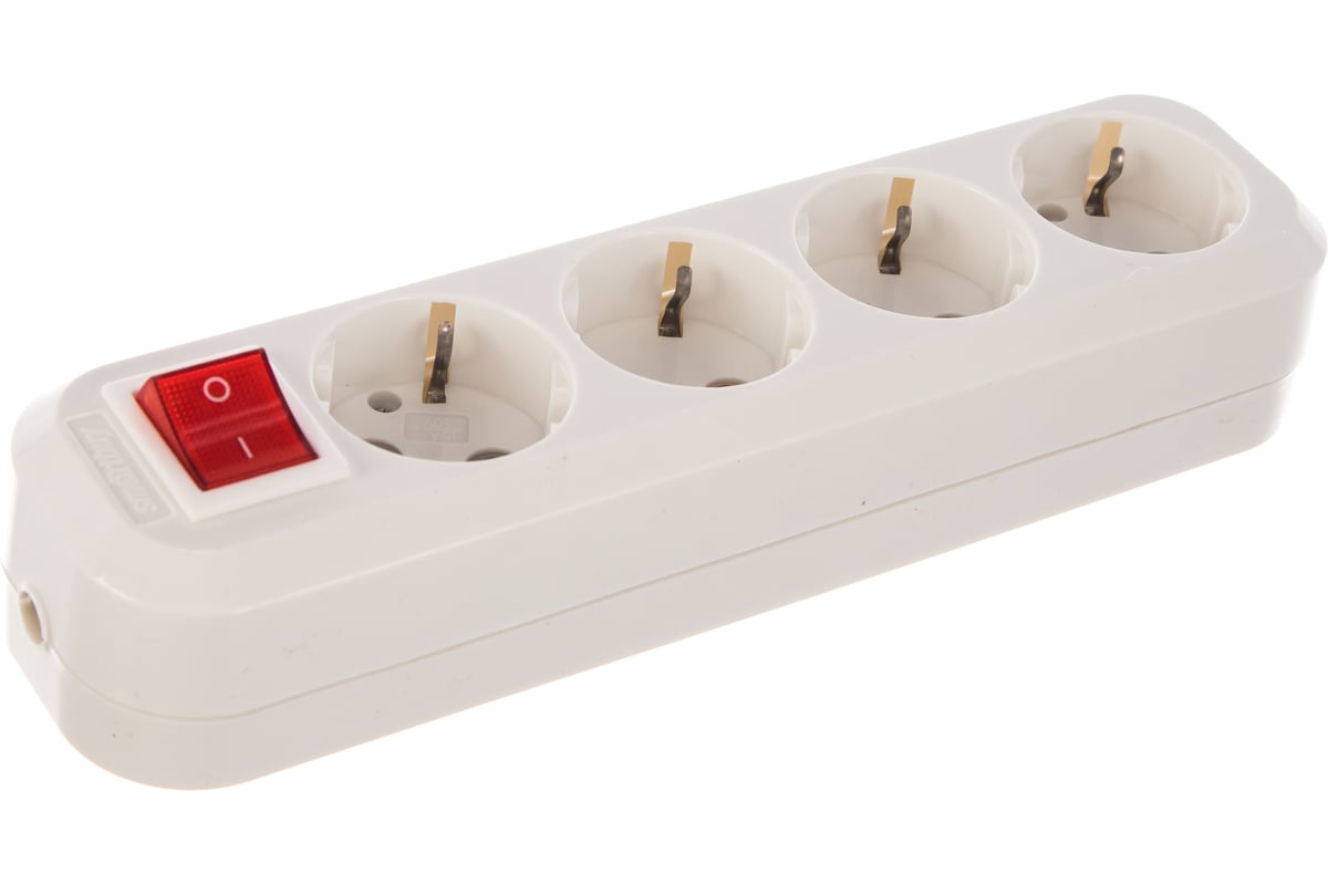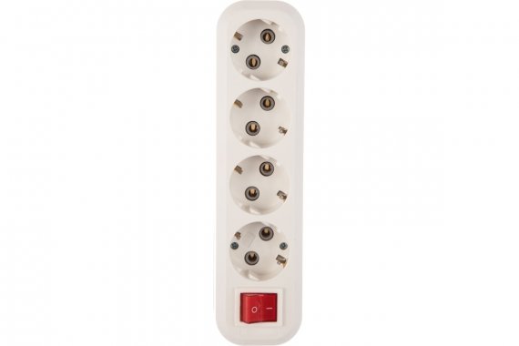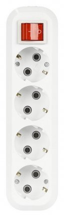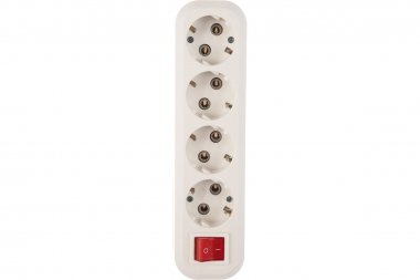 Колодка бытовая, 4 гнезда 16А/3,5кВт c выключателем и заземлением (SBE-16-4-00-ZS)