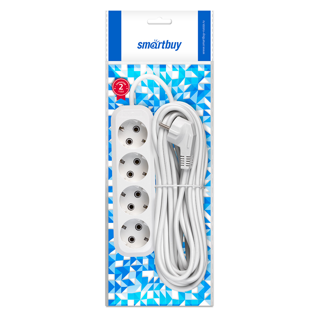 Удлинитель от известного бренда Smartbuy. Оснащен четырьмя гнездами, имеет длину кабеля 10 метров и номинальный ток 16А. Обеспечивает безопасность благодаря наличию заземления.
