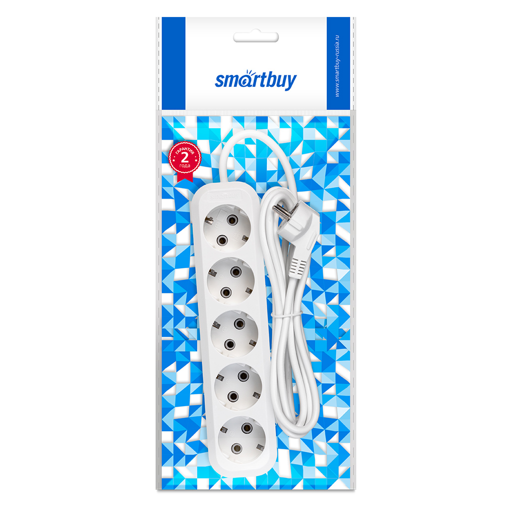 Удлинитель Smartbuy, 5 гнезд 3 метра 16А/3,5кВт с заземлением ПВС 3х1,0 (SBE-16-5-03-Z)