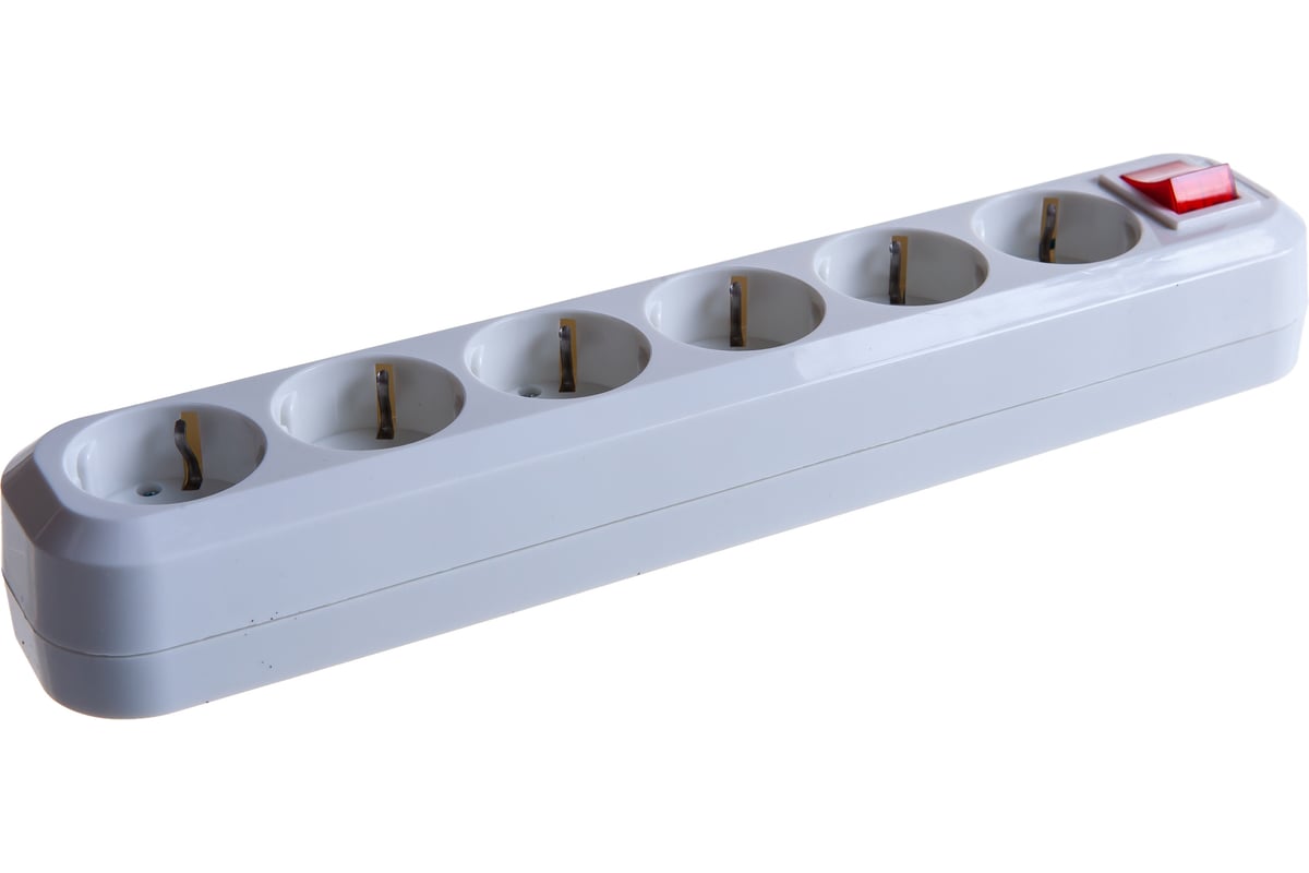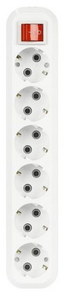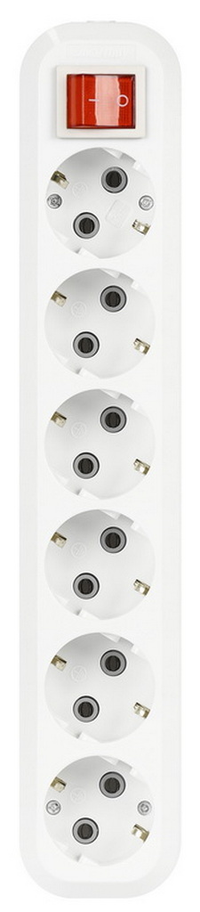 Колодка бытовая, 6 гнезд 16А/3,5кВт c выключателем и заземлением (SBE-16-6-00-ZS)