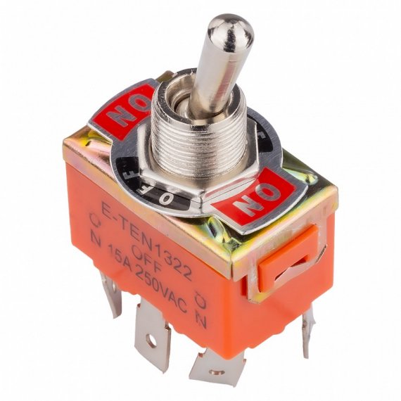 Тумблер двухплюстный ON-OFF-ON с 3 контактами и фиксацией положения (SBE-16-6-S37)