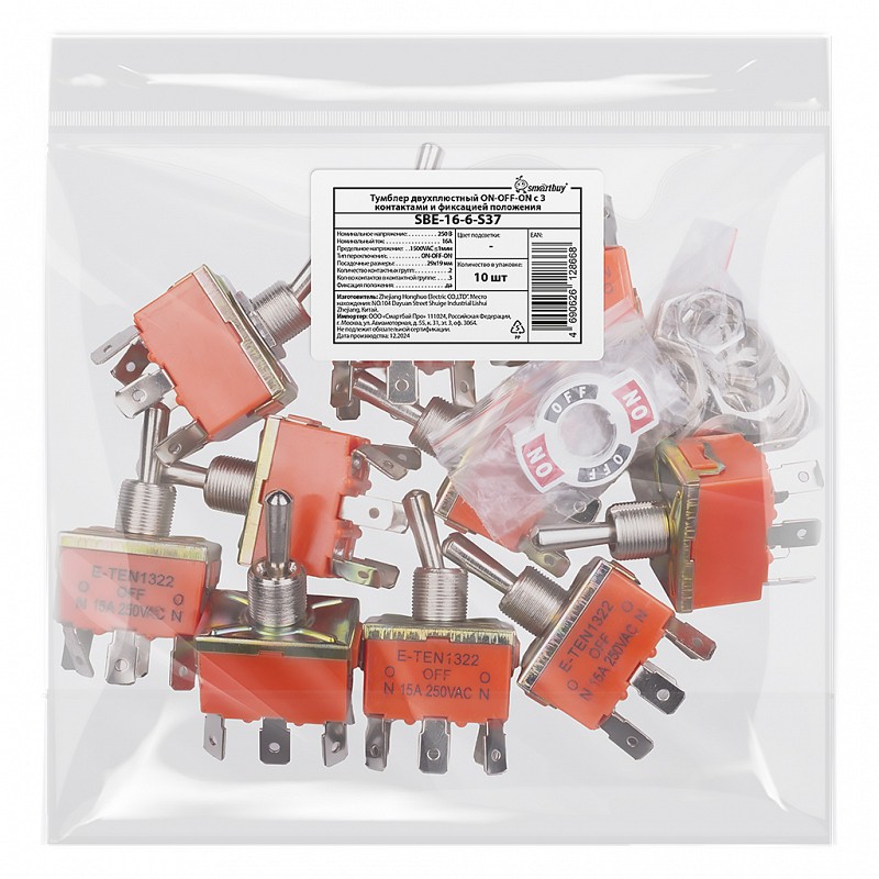 Smartbuy SBE-16-6-S37 Тумблер двухплюстный ON-OFF-ON с 3 контактами