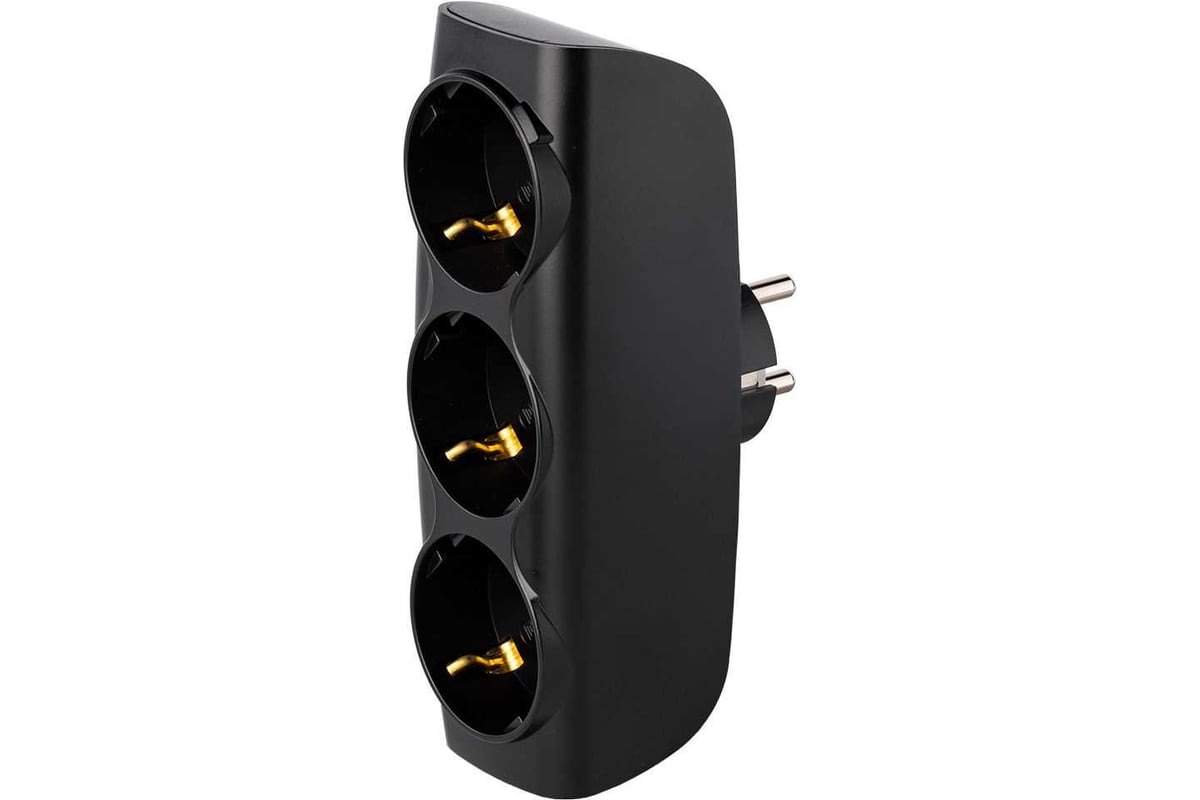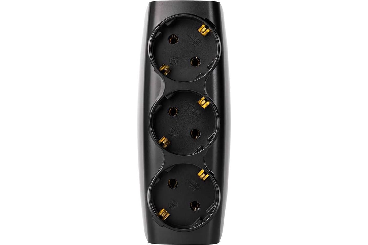 Разветвитель сетевой Тройник , 3 гнезда с заземлением 16А 250B, черный (SBE-16-A04b-3z)