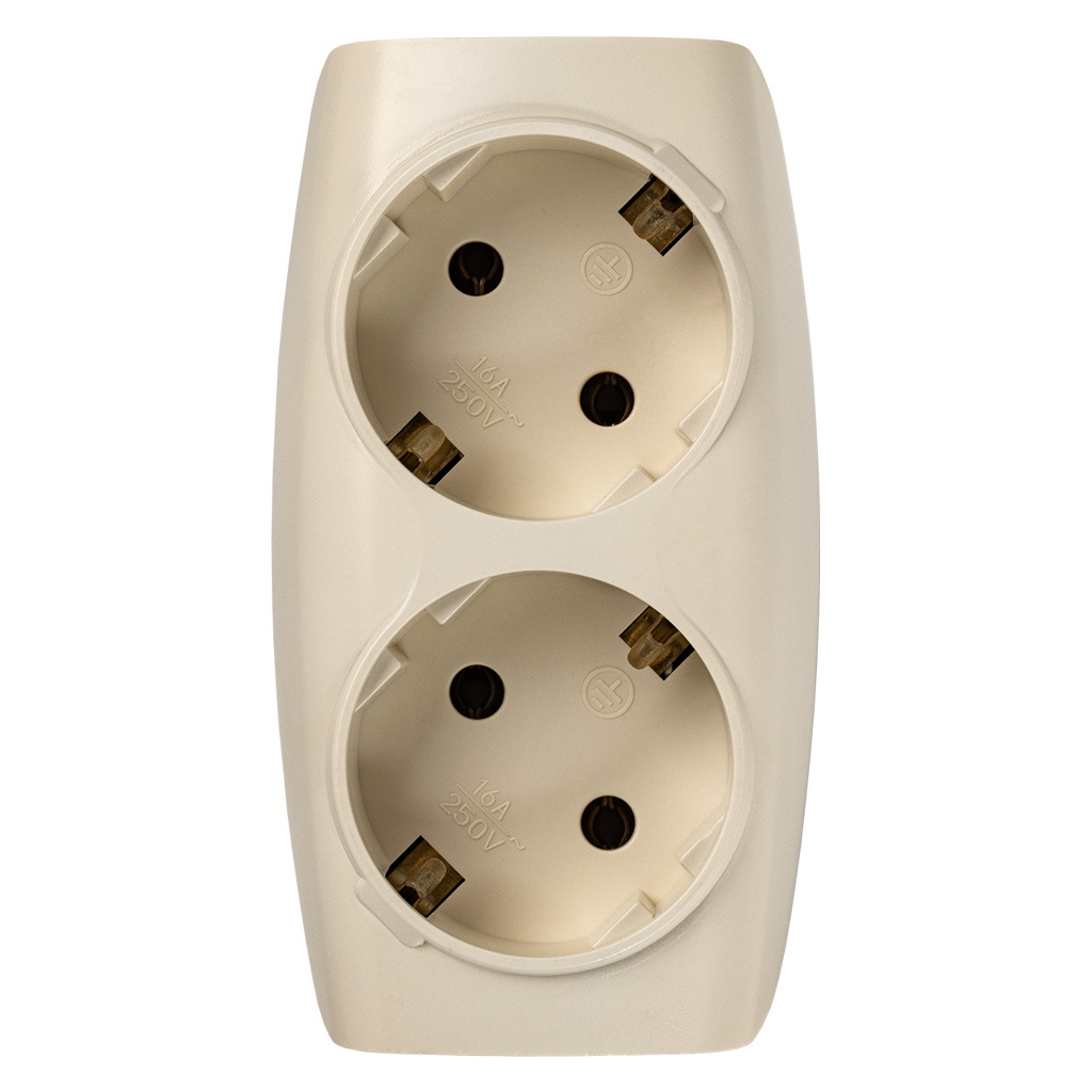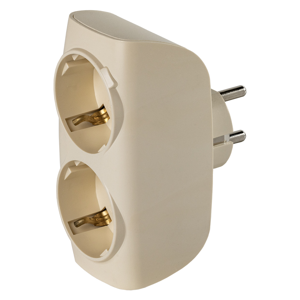 Разветвитель сетевой Тройник , 2 гнезда с заземлением 16А 250B, бежевый (SBE-16-A04i-2z)