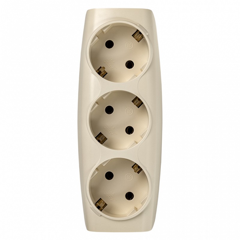 Разветвитель сетевой Тройник , 3 гнезда с заземлением 16А 250B, бежевый (SBE-16-A04i-3z)
