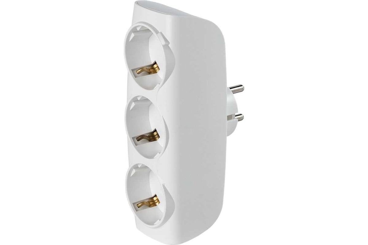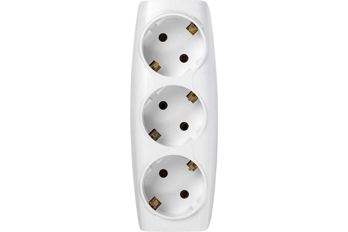 Разветвитель сетевой Тройник , 3 гнезда с заземлением 16А 250B, белый (SBE-16-A04w-3z)