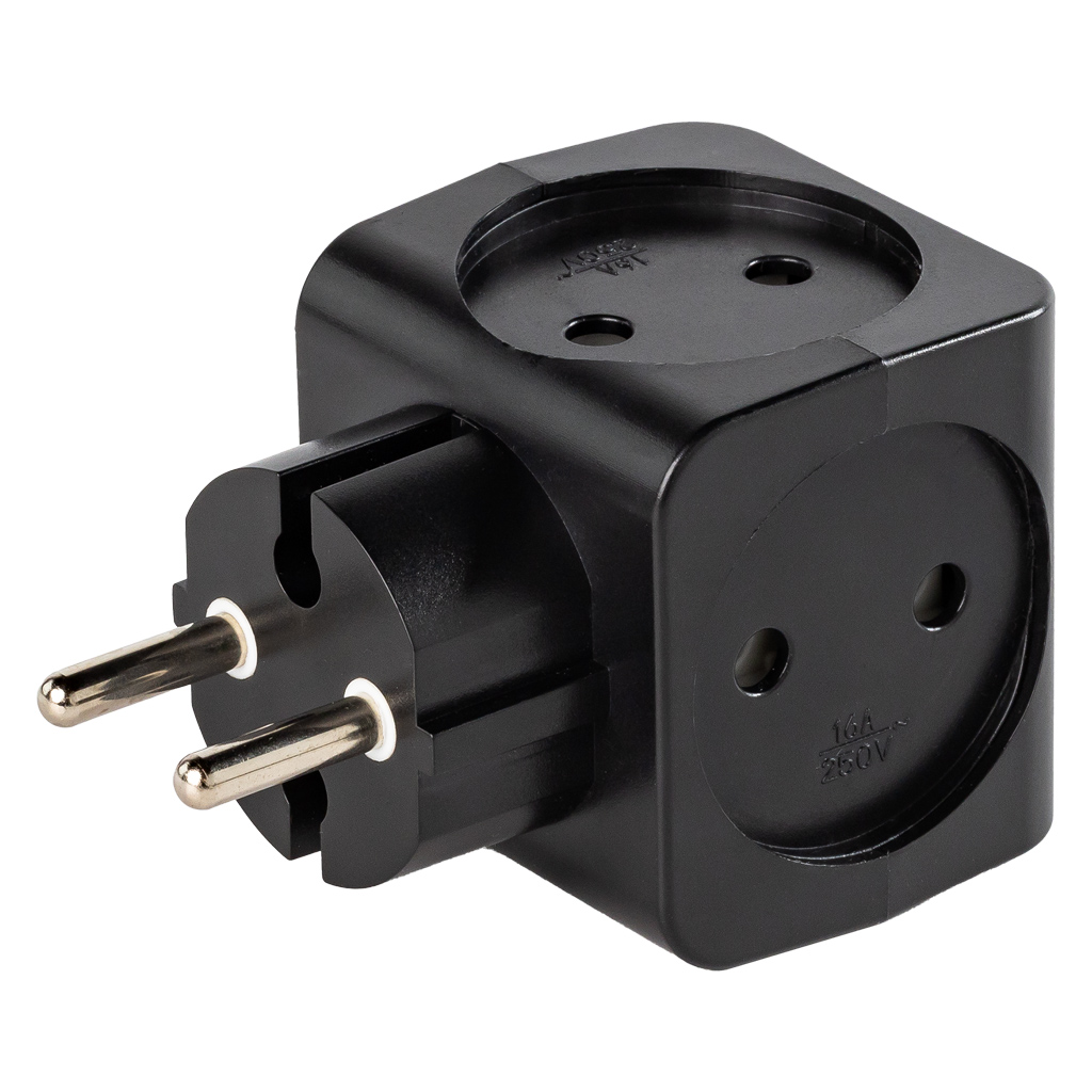 Разветвитель сетевой на четыре гнезда, без заземления 16А 250B, черный (SBE-16-A05b-4)