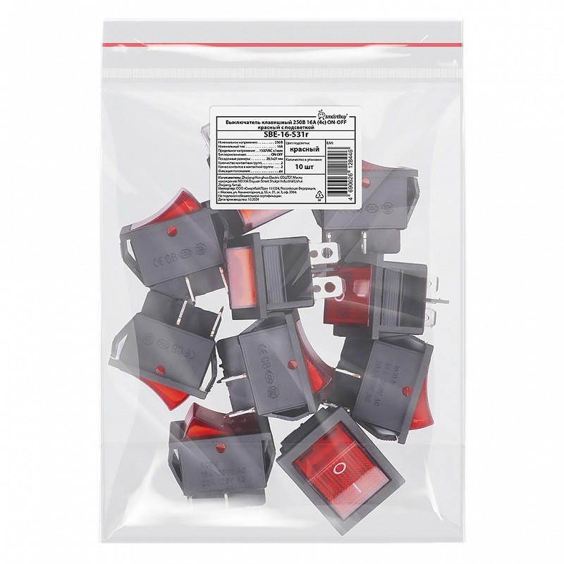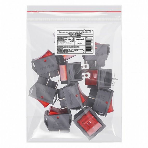 Smartbuy SBE-16-S31r Выключатель клавишный 250В 16А (4с) ON-OFF