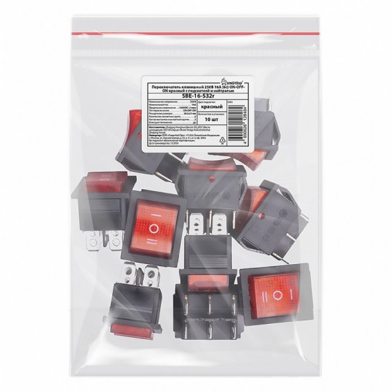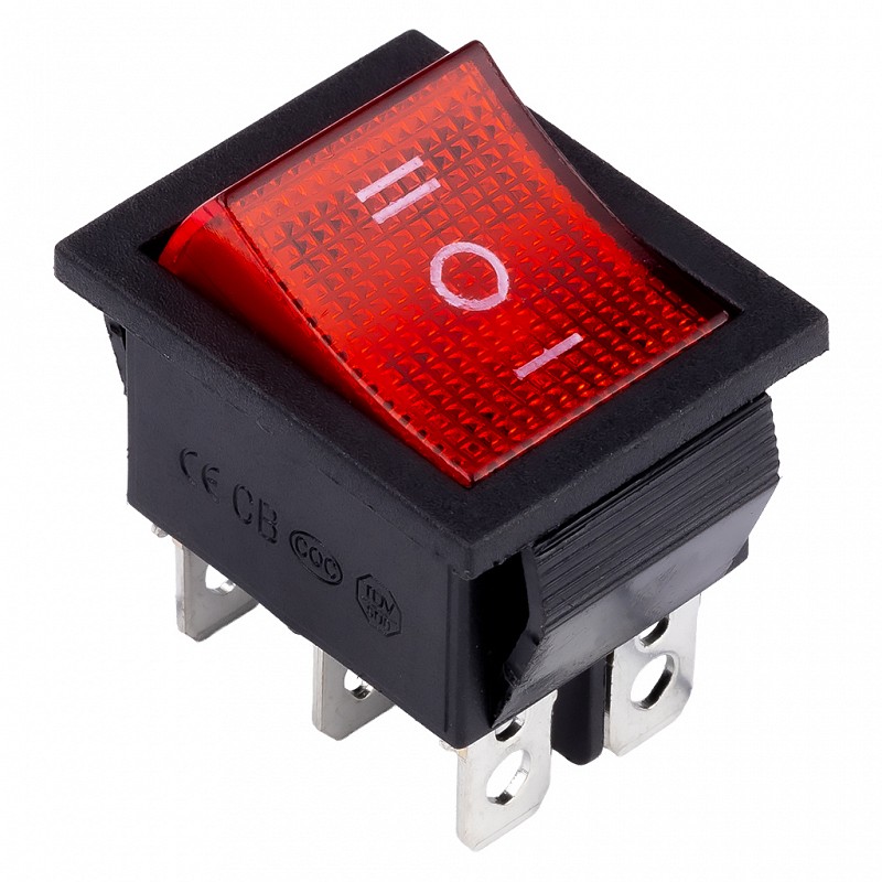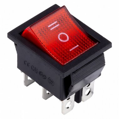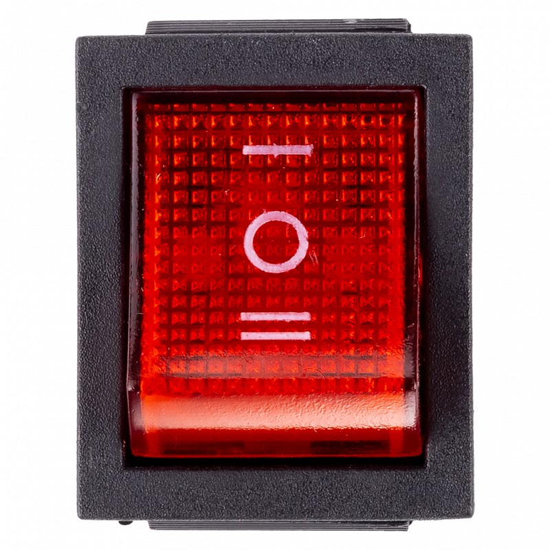 Переключатель клавишный 250В 16А (6с) ON-OFF-ON красный с подсветкой и нейтралью (SBE-16-S32r)