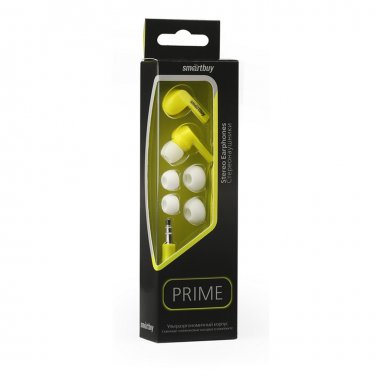 Внутриканальные наушники Smartbuy PRIME, динамики 10мм, плоский каб, желт,3 пары вставок(SBE-160)/60