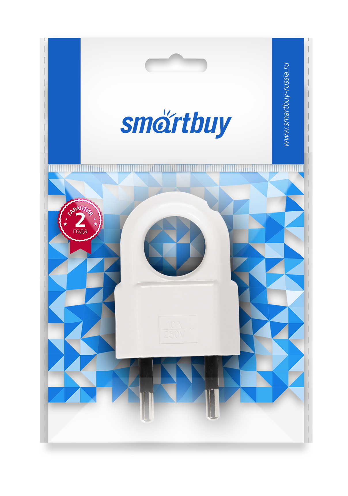 Smartbuy SBE-2.5-P10-w Вилка, плоская с кольцом белая 6А 250В