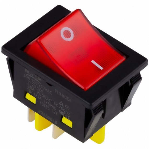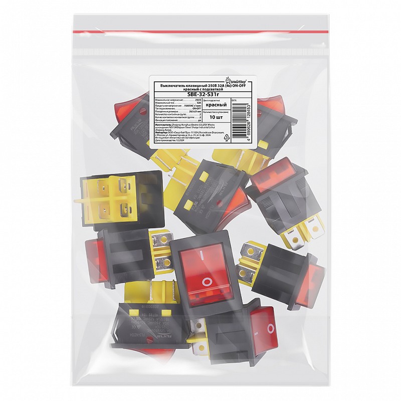 Выключатель клавишный 250В 32А (4с) ON-OFF красный с подсветкой (SBE-32-S31r)