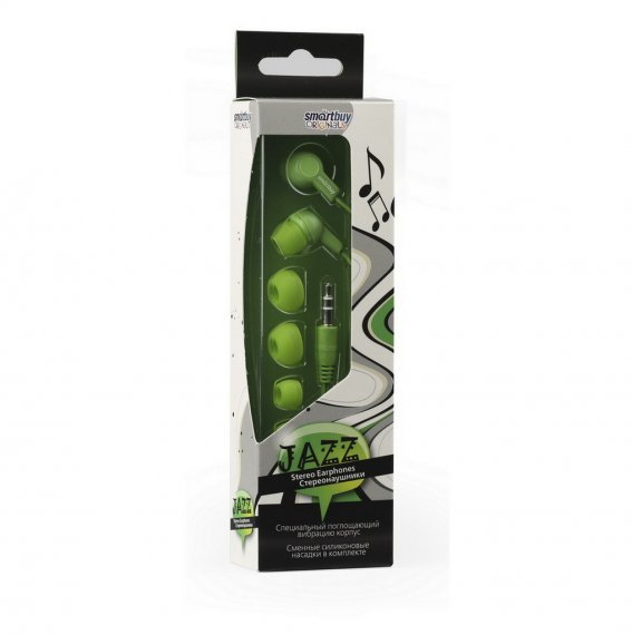 Внутриканальные наушники Smartbuy JAZZ, зеленые, 3 пары силиконовых вставок (SBE-720)/60