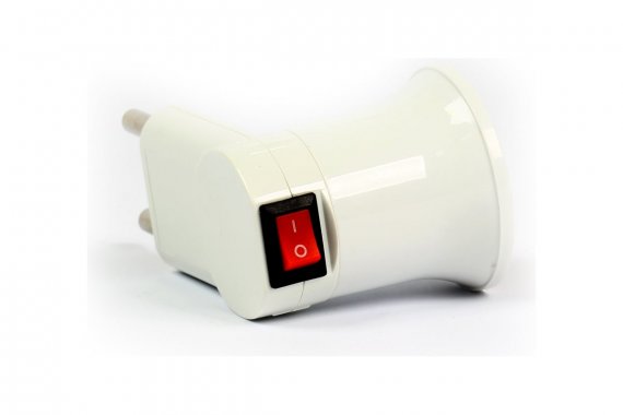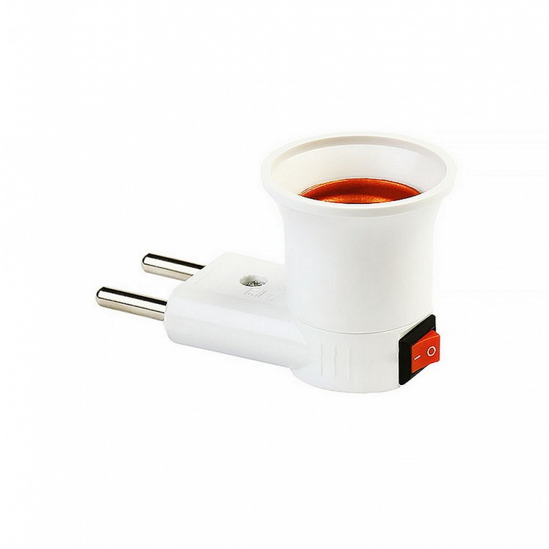 Переходник вилка-Е27 с выключателем, белый (SBE-A-L-E27)