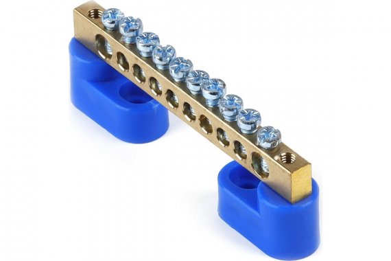 Шина "N" нулевая (латунь) 6х9мм на двух угл. изоляторах 10 групп Smartbuy (SBE-bc-10-2i)
