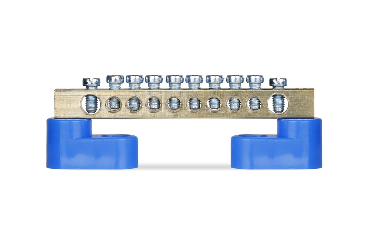 Нулевая "N" шина на двух угловых изоляторах Smartbuy латунь 6x9мм 10 групп SBE-bc-10-2i предназначена для электрического и механического соединения нулевых, защитных и фазных проводников. Выполнена из латуни, установленной на изоляторы из самозатухающего пластика. Температура окружающей среды от -40 до +50 С. Среднее значение относительной влажности не более 90%.
