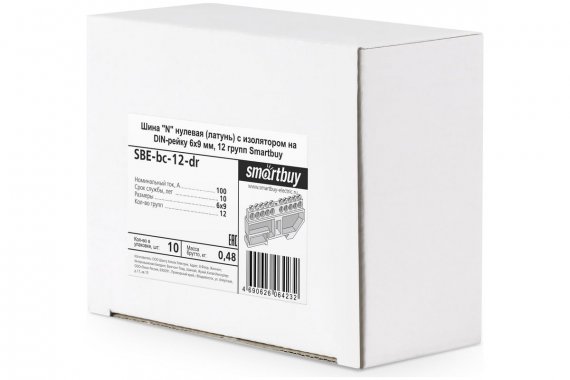 Шина "N" нулевая (латунь) с изолятором на DIN-рейку 6x9мм, 12 групп Smartbuy (SBE-bc-12-dr)