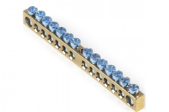 Нулевая "N" шина Smartbuy латунь 6x9мм, 14 групп, крепеж по центру SBE-bc-14 применяется в щитовом оборудовании для подсоединения нулевых рабочих (N) и нулевых защитных проводов (РЕ). Крепление шины предусмотрено по центру. При подключении к шинам медных многожильных проводов рекомендуется оконцевание их наконечниками-гильзами.