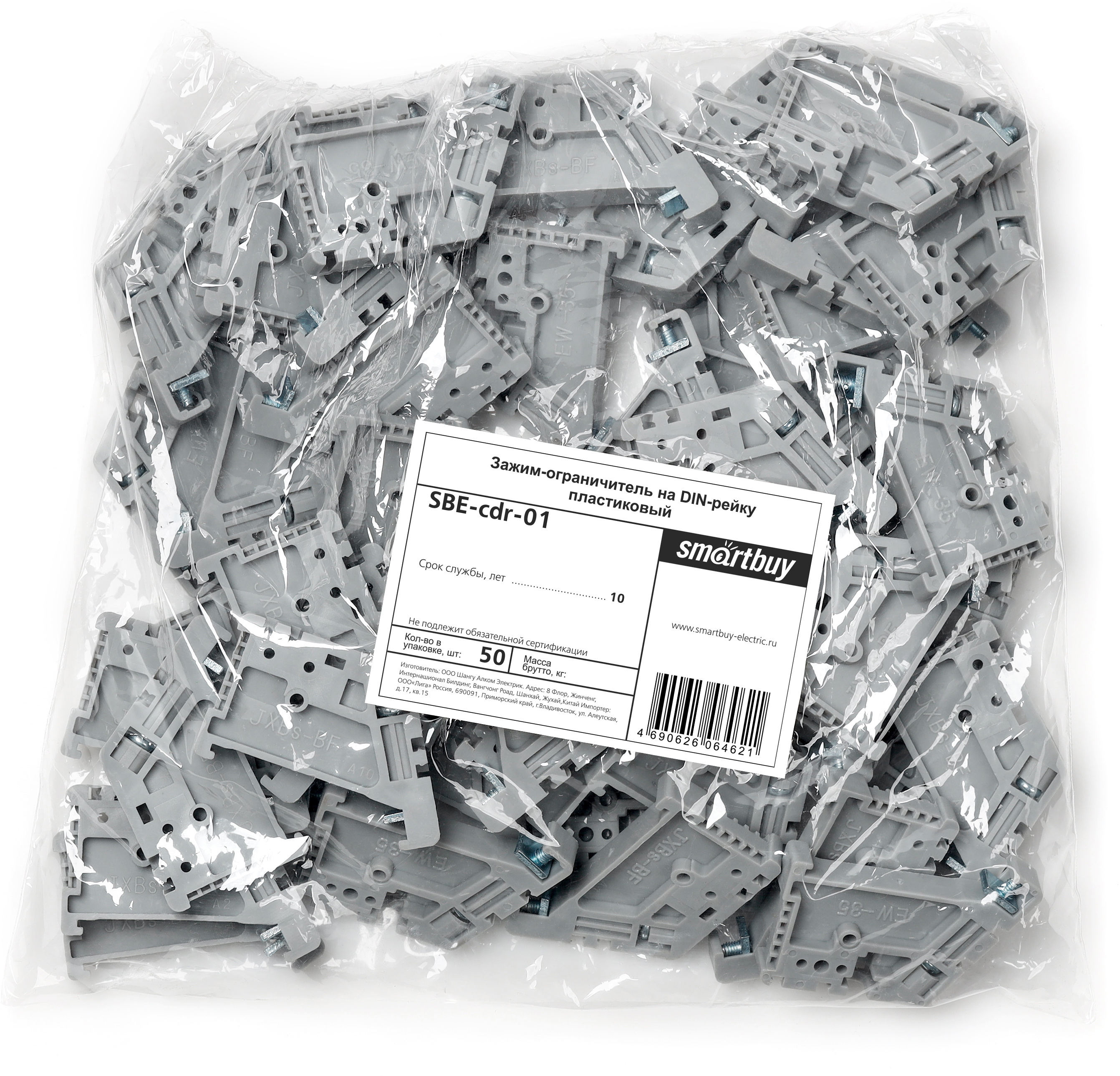 Smartbuy SBE-cdr-01 Зажим-ограничитель на DIN-рейку пластиковый