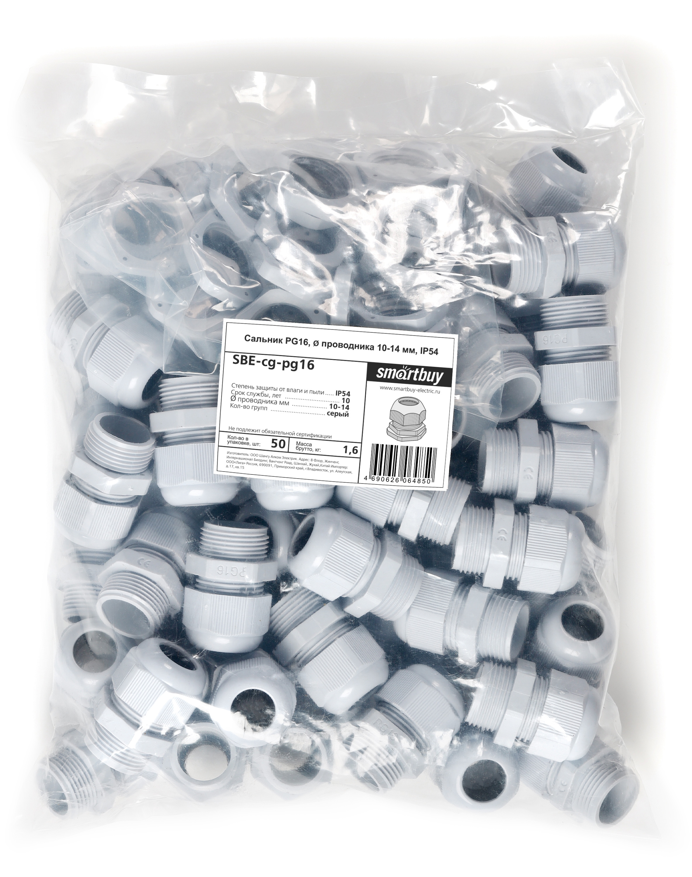 Технические характеристики Smartbuy PG16, диаметр проводника 10-14мм, IP54 SBE-cg-pg16