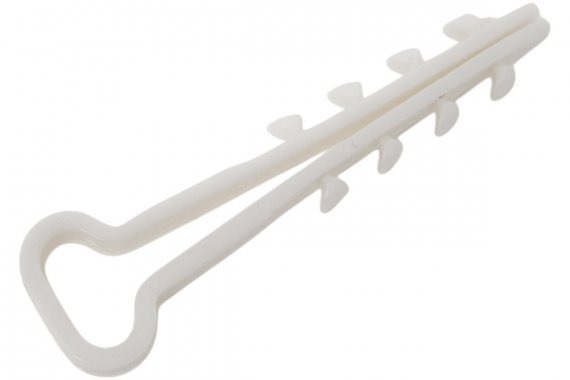 Дюбель-хомуты предназначены для крепления к стене любых видов кабелей: электрических, коммуникационных и других. Совмещают в себе закладную деталь и хомут. Для монтажа требуется только перфоратор.