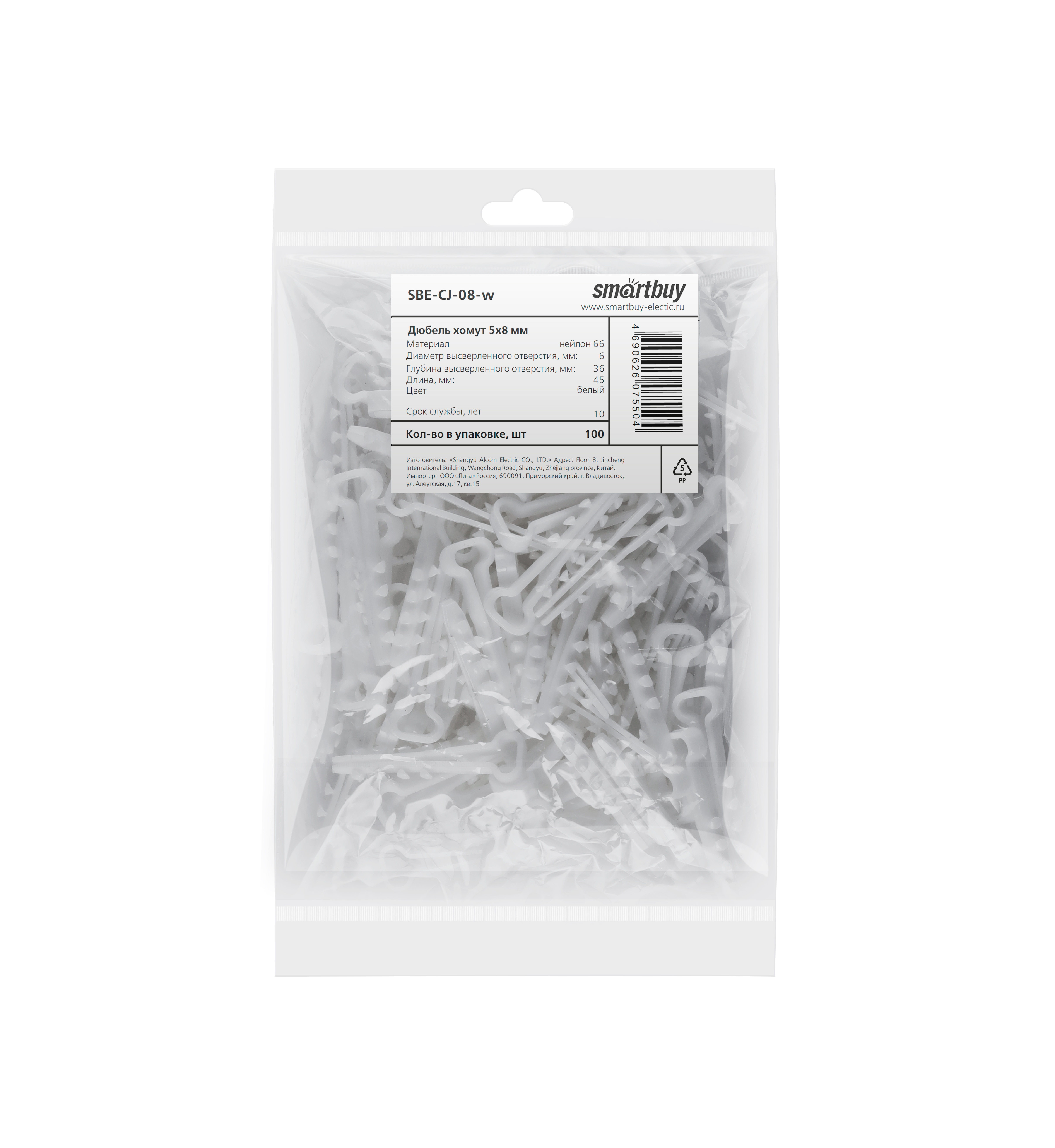 Smartbuy SBE-CJ-08-w Дюбель-хомут для плоского кабеля 5х8 мм