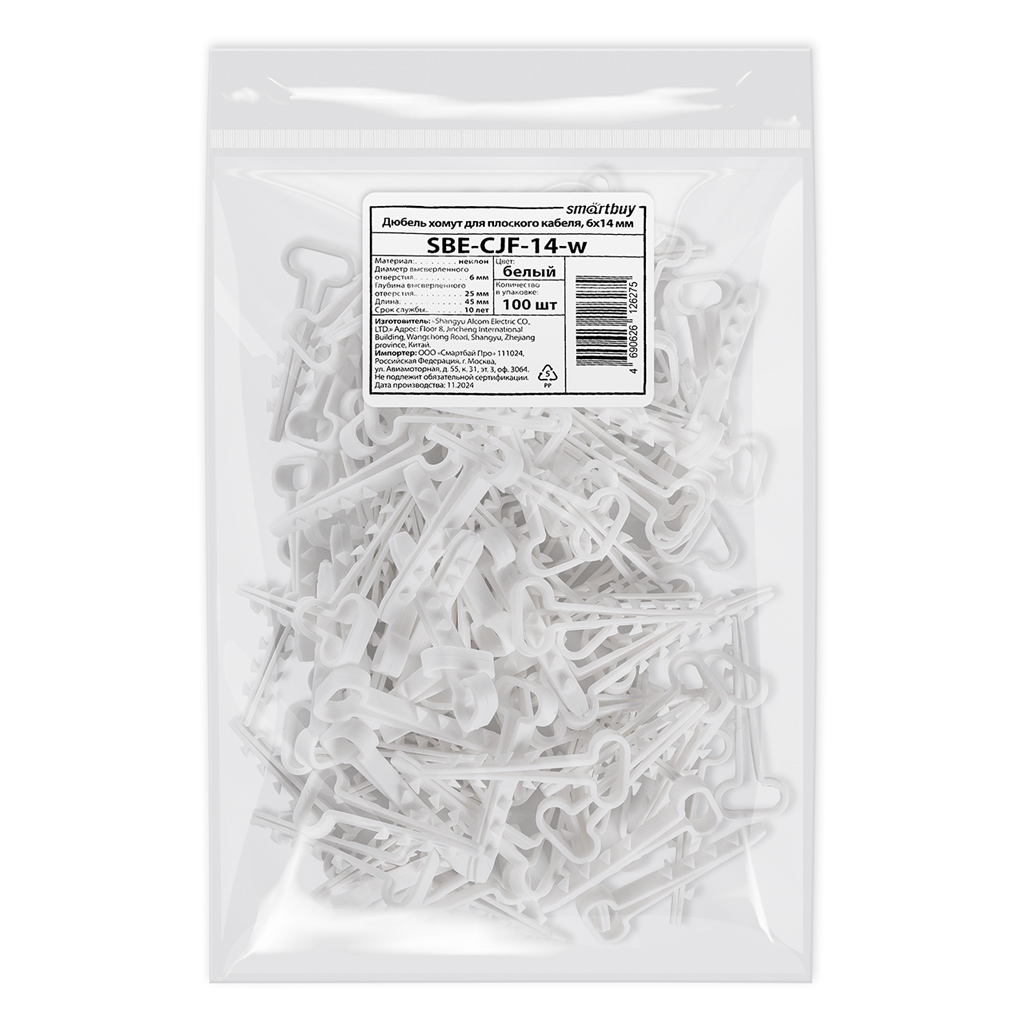 Smartbuy SBE-CJF-14-w Дюбель-хомут для плоского кабеля 6x14 мм нейлон